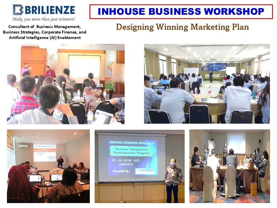 Inhouse Business Workshop: Designing Winning Marketing Plan menjadi solusi utama dalam merancang Marketing Plan (Rencana Pemasaran) yang unggul, efektif, terstruktur dan jelas. Peserta akan memiliki keyakinan bahwa Rencana Pemasaran yang dibuat akan membantu perusahaan unggul dalam kompetisi di pasar serta mencapai target marketing yang ditetapkan.